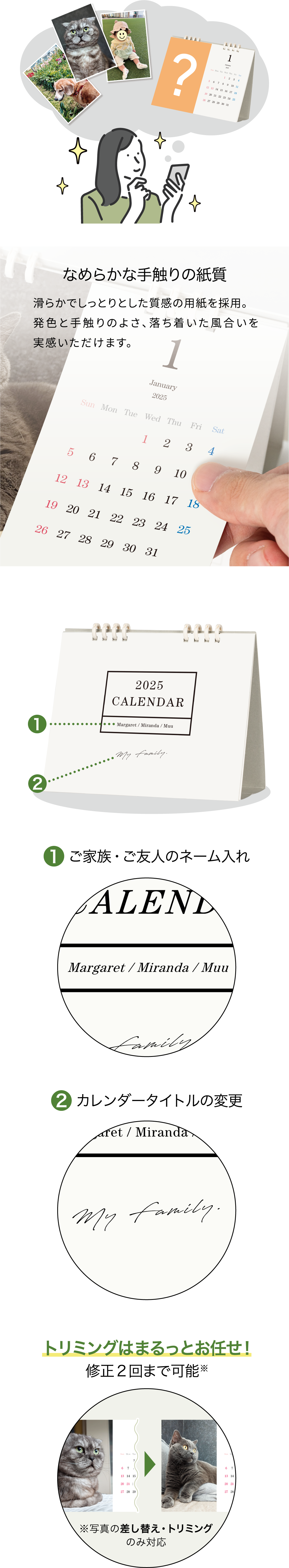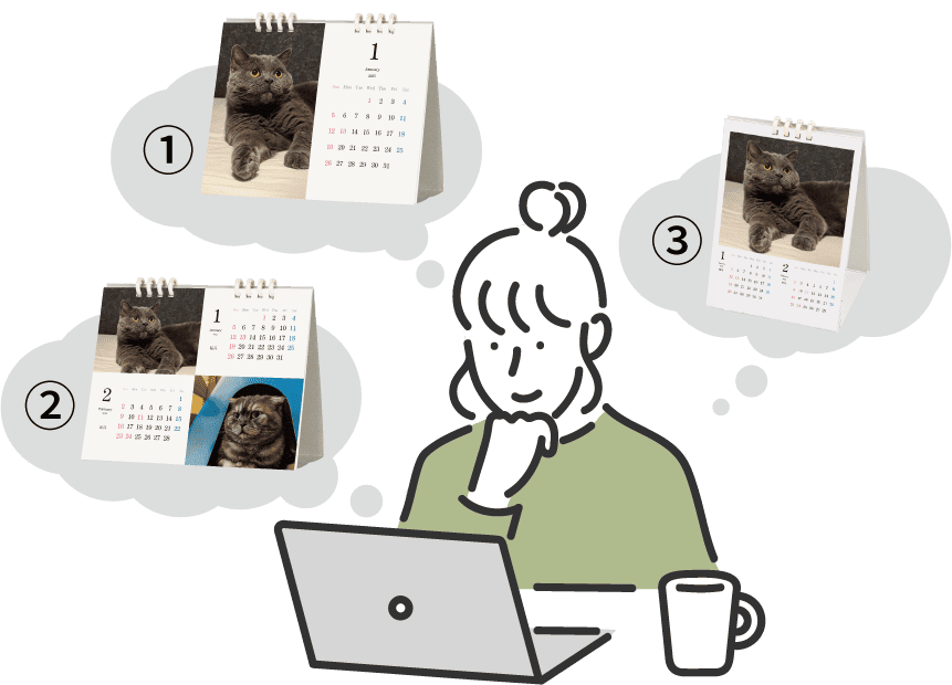 3種のフォトカレンダーの中から、お好みのスタイルをお選びください。